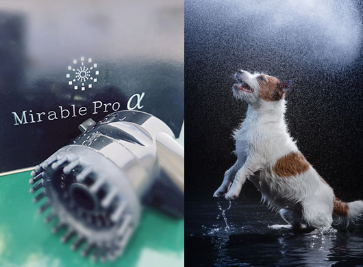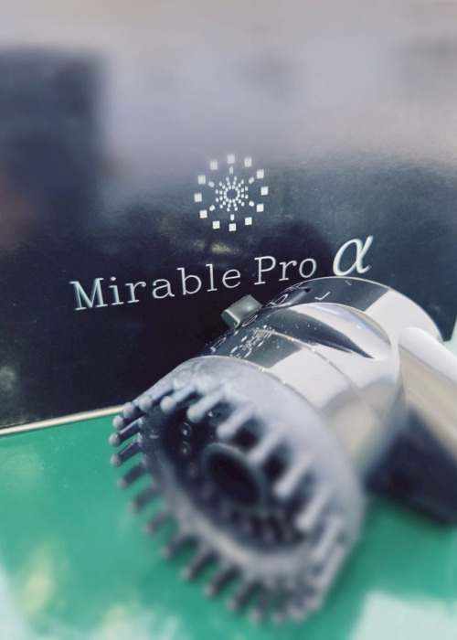 当サロンで導入しているのシャワー「ミラブルプロα」は、1秒間に約2000回転(1分間に約12万回)の高速うず流で超微細な泡ウルトラファインバブルを生成。